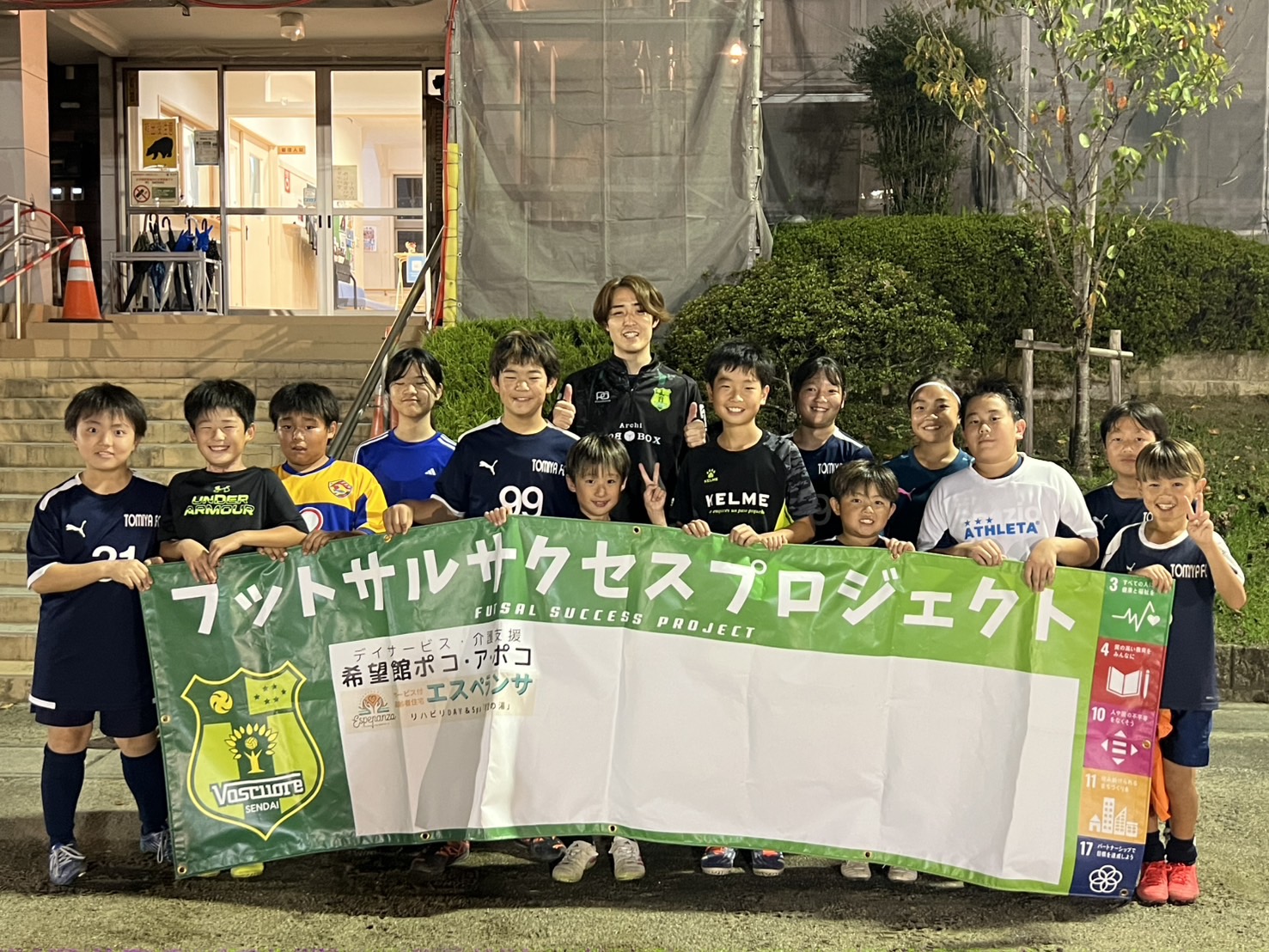 ヴォスクオーレ仙台が主催するヴォスクオーレカップでは、各チームの皆様の交流や各地域のフットサル・サッカーの普及に貢献し、小中学生のココロとカラダの健全な育成を図ることを目的に実施しています。また、プロ選手との交流で、夢に向けたエピソードや、夢の実現に向けたアドバイスを子供たちに伝えます。