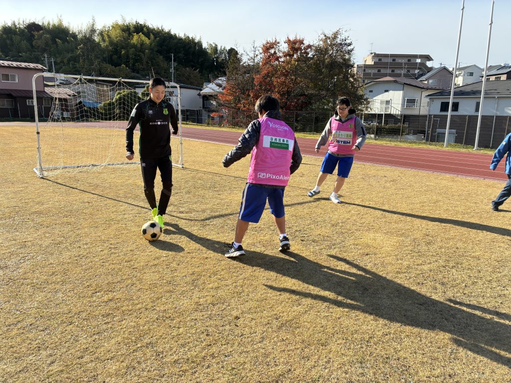 生徒と一緒にプレーする柴田選手